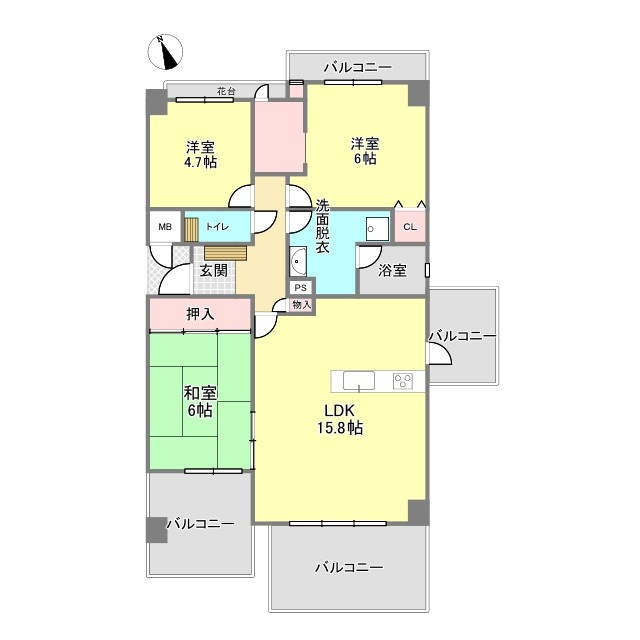 LDK 15.8帖 / 和室 6.0帖 / 洋室 4.7帖 / 洋室 6.0帖 / |